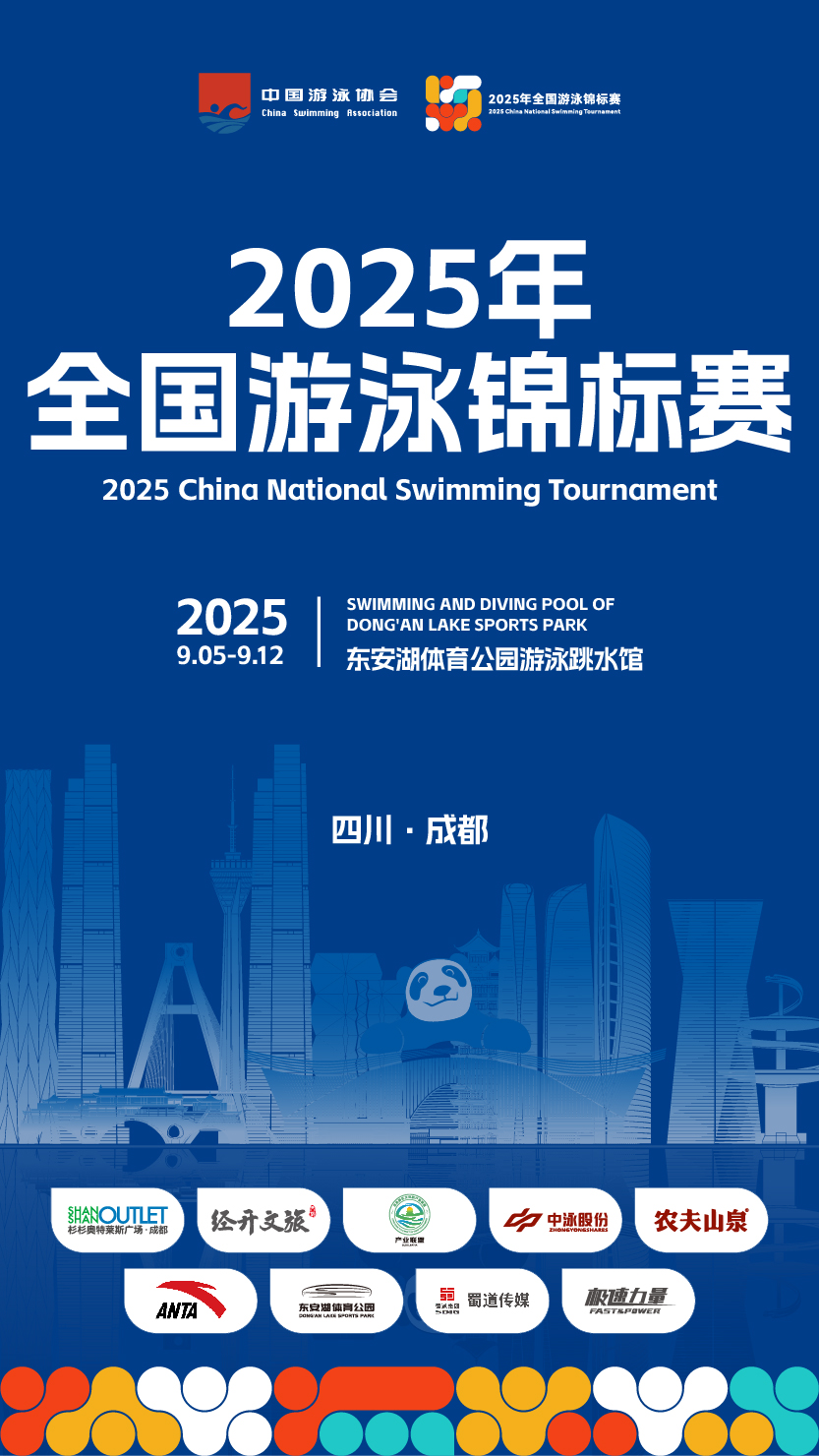2025年9月5日至12日,全国游泳锦标赛将在成都东安湖体育公园游泳跳水馆隆重举行。作为新加坡世锦赛后国内首次游泳项目高水平赛事,本次比赛汇聚了包括奥运冠军、世锦赛奖牌得主在内的全国顶尖游泳运动员。本届赛事设34个单项和7个接力项目,涵盖自由泳、蛙泳、蝶泳、仰泳及混合泳等游泳项目。